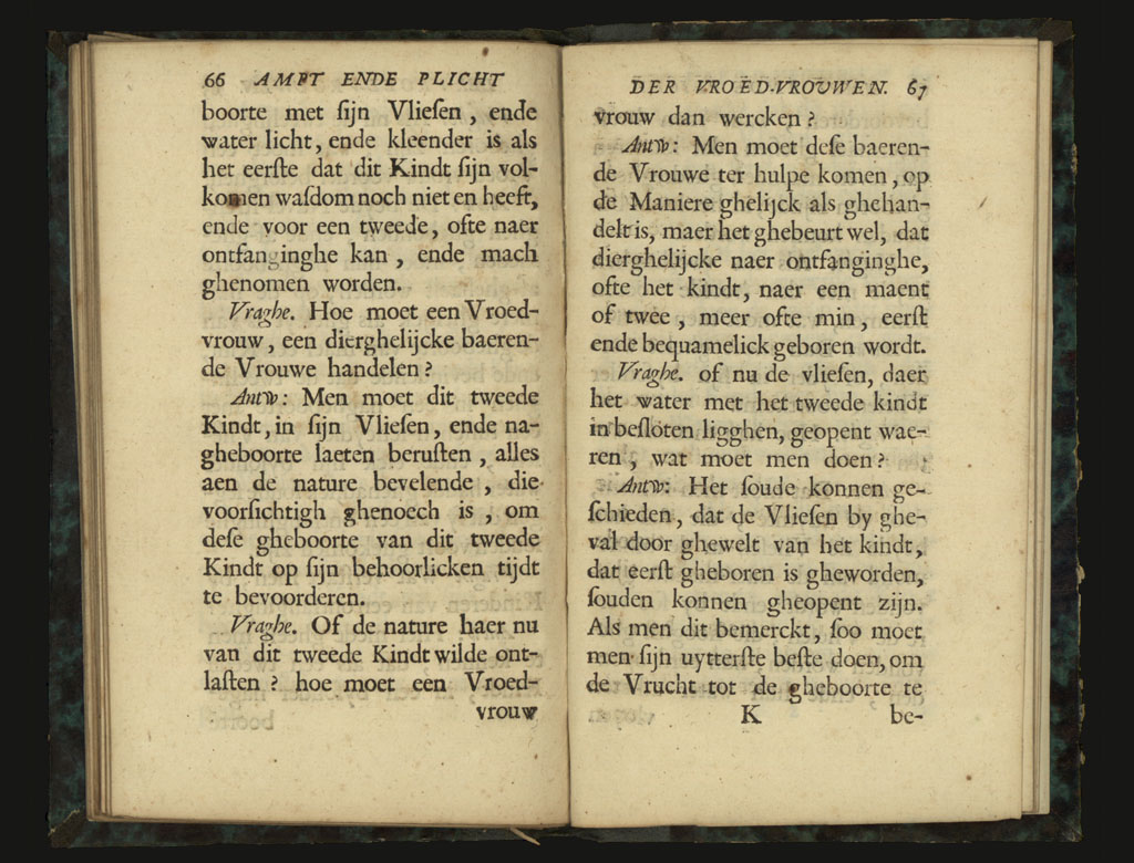 Cornelis Kelderman, Onder-wys voor alle vroed-vrouwen, raeckende hun ampt ende plicht Brugge, Ignatius van Pee, 1697 Exemplaar: Brugge, Openbare Bibliotheek, CDM 4