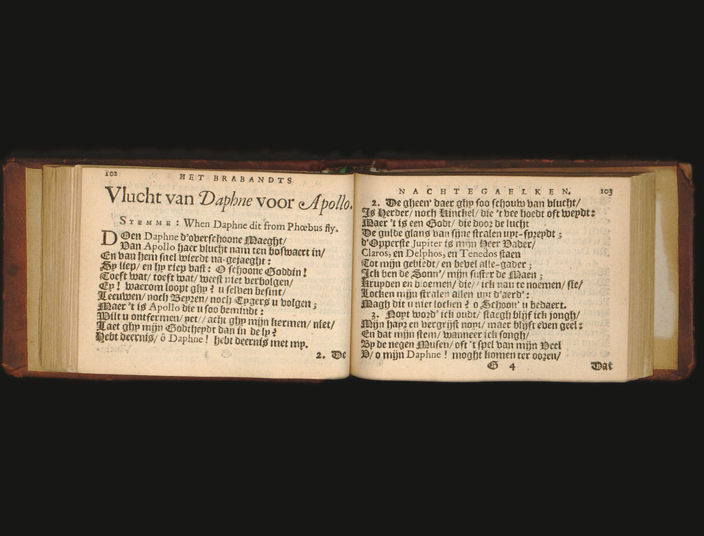 Het Brabandts Nachtegaelken, Met zijn Driederley Gesangh, Te weten, Minne-liedekens, Herders-sangen, ende Boertigheden. Vyt der muyten in 't licht gebracht tot lust der Iuffrouwen, ende in desen thiensten Druck vermeerdert door J.M.
